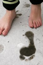 Soles on the first snow. Part 1.It is always difficult to have a barefoot walk on the first snow, because feet are not used to this experience after the hot summer and warm boots. It is a real torture to leave the warm boots and step on the burning snow. The snow really seems to burn the skin, though there is no real frost and snow doesn't cover all the ground. For Lena it was twice difficult to walk barefoot on snow because she was not a real barefooter and winter barefooting for her was a unique experience. Soon after she took off her shoes, her soles became red with cold and the girl herself began to shiver. But soon she got used to the new feeling and even tried to get a kick out of first snow barefooting. 2008-01-06 22:07:33 |