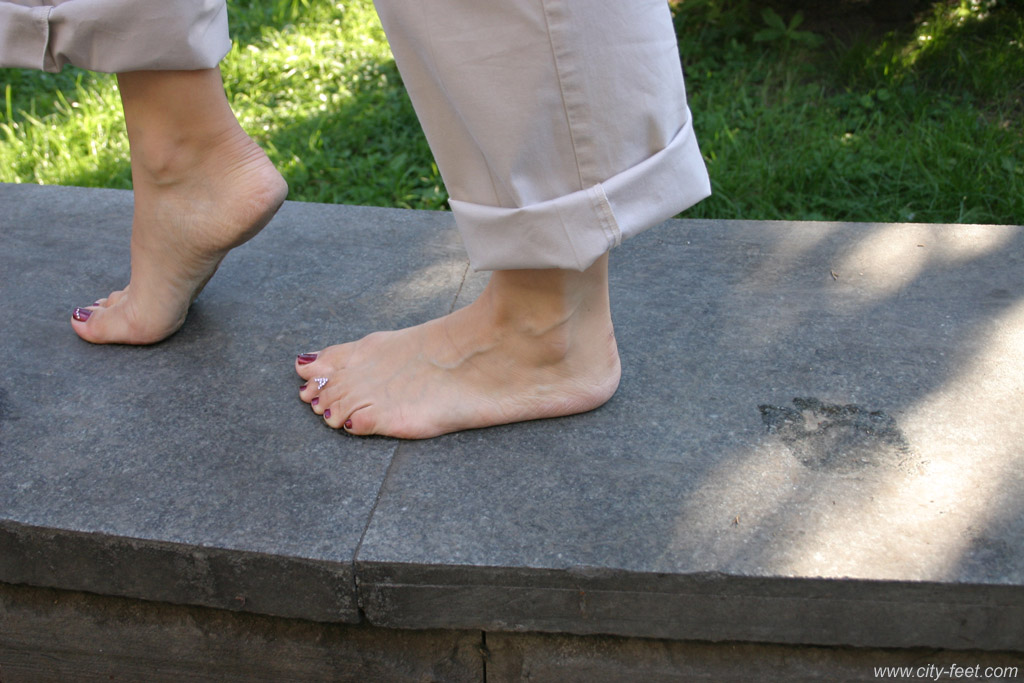 Anjuta walked along the cages with different animals, stepping with her bare feet on the hot asphalt, sharp gravel or soft sand and leaving her footprints on the parapet. Her feet became black with dirt. But she didn't feel shy with people that were all around and casted curious glances. She even didn't feel uncalm when the tourists asked her to help them - to take a photo of them.