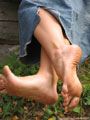 An autumn voyage. Part 2. The custodians of course didn't manage stop Mila and Julia from making photos, though they were not glad that our girls posed on the background of the churches. So the trip was going on... Our girls saw not only beautiful church architecture, but also beautiful apple-trees, thick-sown with apples, cute flower-beds, and pretty houses in Danish and German style. But what really made the girls happy - was the horse, which was pasturing on the meadow and grazing until the naughty girls decided to make photos with it. First it was afraid of the unbidden guests, but soon it got used to the girls and wouldn't look aside from its meal. After Mila and Julia had seen every corner, they went home, tired, but happy. On the railway station in Moscow our girls were met by their morning acquaintance - a red-haired cop, who smiled and greeted them. In the metro the girls made photos of their tired soles, covered with corns and dirt. This time Mila and Julia managed to go to the metro unnoticed - nobody tried to stop them and ask to put their boots on. At eight o'clock in the evening the girls waved each other good-bye and went home. They were eager to have a look at the photos. ... We would like to share a secret with you... ;) Our girls (Mila and Alena) have just returned from their second trip. This time they made even more sexy and exciting photos and (that is our surprise for you) - they took a video camera with them! So wait for the next Barefoot Voyages...