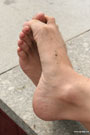 It was a really windy and cold day when Jul decided to have a pleasant walk round the citiesÂ’ center, wearing no shows. Her naked strong feet touch rough and dirty ground and stairs. Gorgeous Jul with amazingly beautiful blond hair sits near the fountain, showing her naked feet covered with dust. She has a great time while walking round the city barefoot.