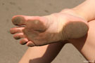 Sasha decides to take a walk to the market place barefoot. She gets there and goes to the nearest bar to have lunch. Sasha sits in the bar showing her strong feet all covered with huge amounts of dirt and dust from all around the city. Then Sasha decides to walk round the city for a little bit more. Barefoot lifestyle seems to make Sasha very happy. She walks down streets, with her naked feet, smiling.
